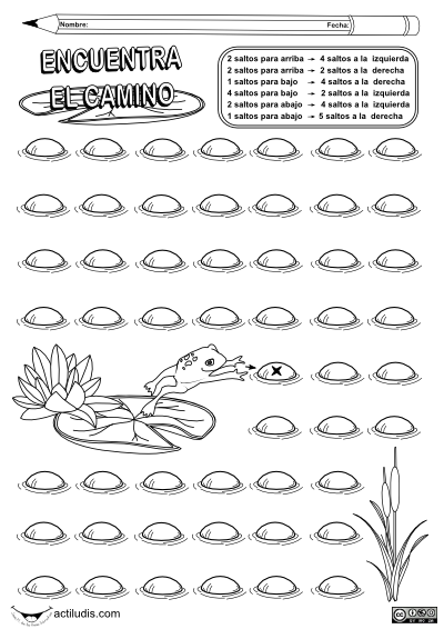 Con esta actividad se trabajan los conceptos de arriba, abajo, izquierda y derecha a través de saltos que debe ir dando la rana desde el nenumar hasta llegar los juncos.