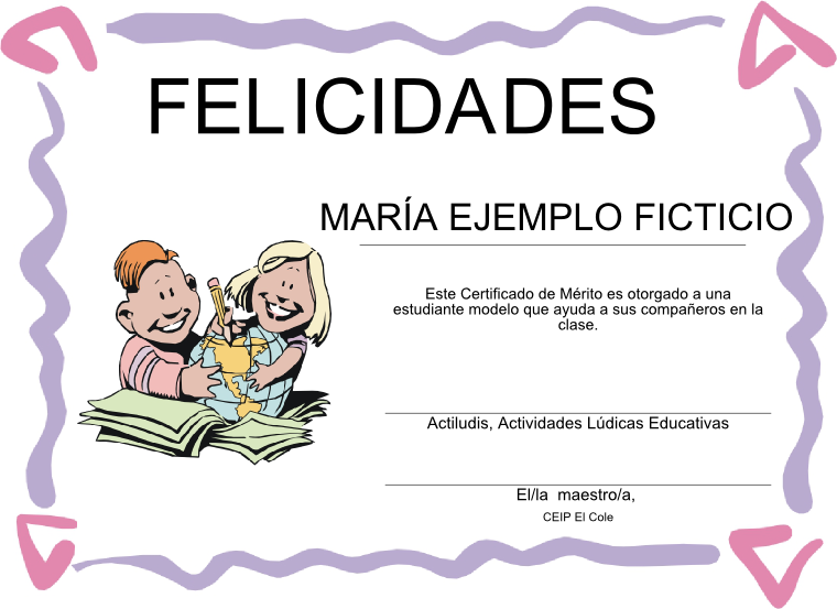 En esta páginas podemos rellenar los datos de nuestros alumnos, elegir un dibujo de la galería y completar los distintos apartados, para tener en pocos minutos unos certificados, en pdf listos para imprimir, de los más trabajadores, los más solidarios, los mejores compañeros, los mejores deportistas…