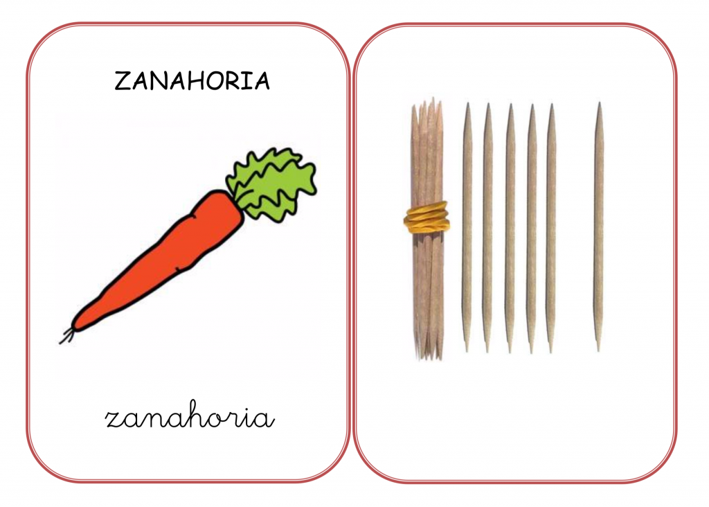Se pueden plantear diversas dinámicas según lo queramos trabajar, la idea original es disponer las tarjetas con la cara con los palillos boca arriba e ir presentando las tarjetas por la cara del animal para emparejar. Comprobamos si han acertado girando la tarjeta y dejando visible el alimento. Si se desea crear una baraja individual basta con imprimir dos paginas por hoja tras convertir el documento a jpg.