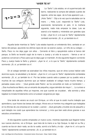 Autor: José Miguel de la Rosa Sánchez – Comprensión lectora: Silvia Asuero – Dibujo: Vladimir Zúñiga.