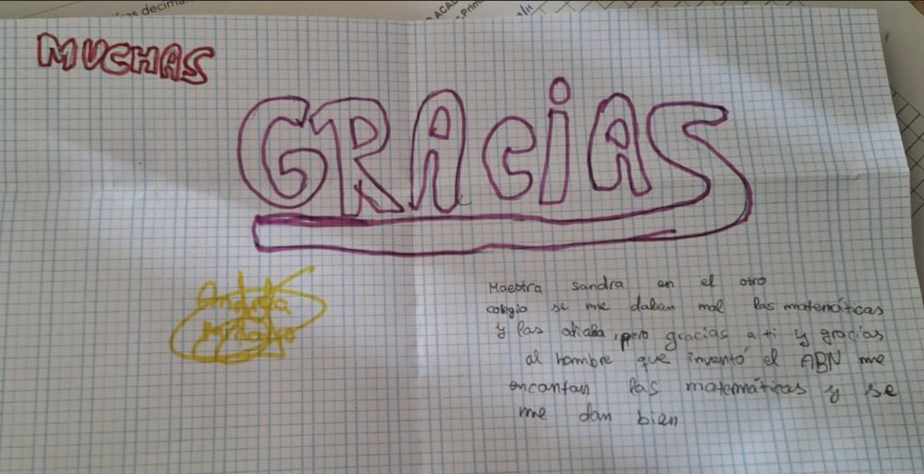 ¿Puede una metodología cambiar tanto la percepción de las matemáticas, de pasar de odiarlas a expresar gratitud? La respuesta la proporciona esta niña, quien, desde su inocencia y desconocimiento de los desafíos y obstáculos que le aguardan, ha tenido la fortuna de contar con una maestra que, como tantas otras/os en el método ABN, más allá de sus deseos, dificultades y comodidades, se embarcaron en un proceso de formación y transformación de su enfoque hacia las matemáticas, incluso enfrentandose a críticas y hostigamientos.