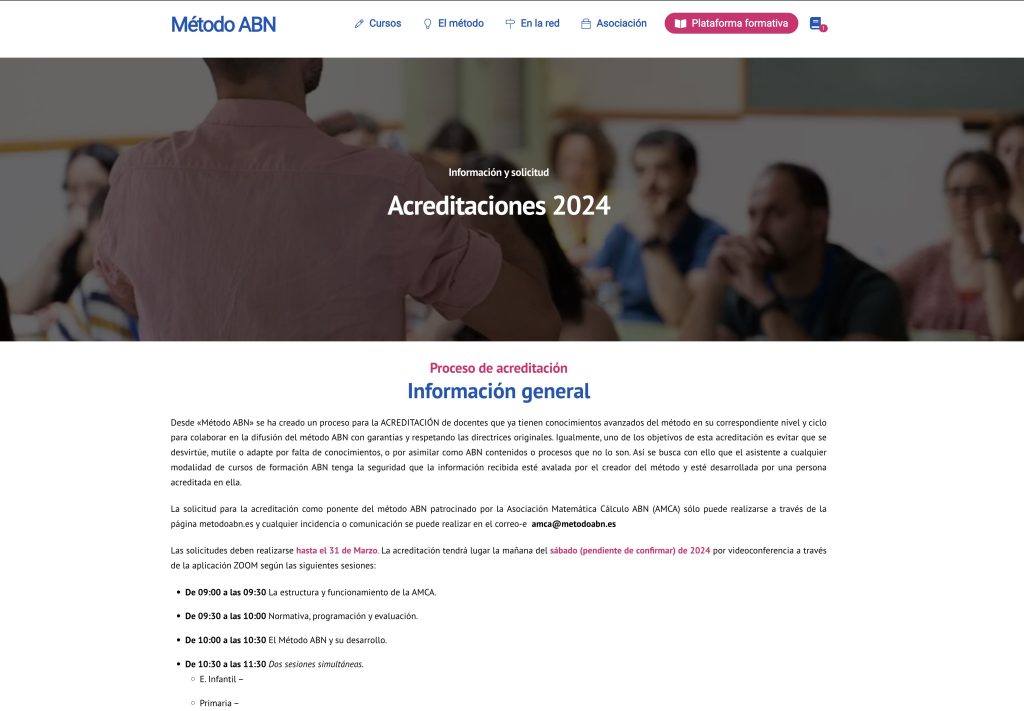Como es lógico el principal requisito para realizar la acreditación es dominar el método ABN en el nivel en el que solicite la acreditación. Si este requisito lo cumples el resto es muy sencillo. Puedes hacer la inscripción hasta el 31 de mayo y la sesión tendrá lugar la mañana de un sábado del mes de abril, que muy pronto confirmaran.