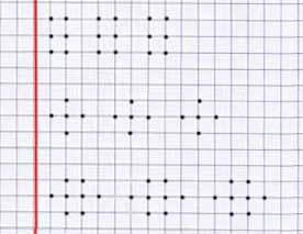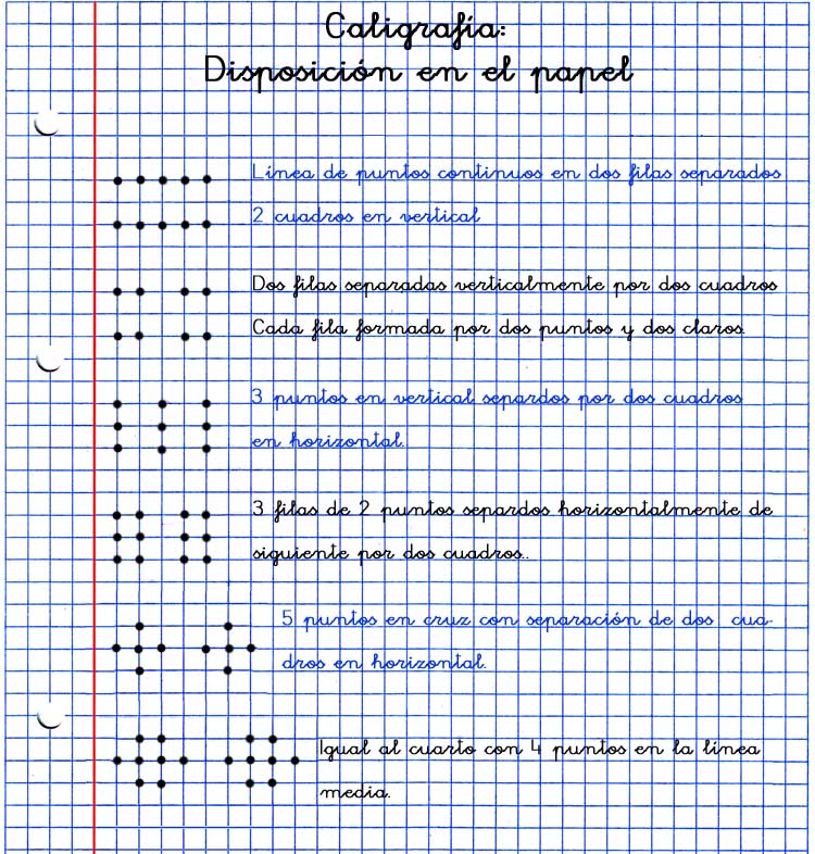 1.- Se empieza realizando ejercicios de punteado en la cuadrícula, esto les permitirá ir dominando el espacio y las distancias en el papel. La secuencia será:
