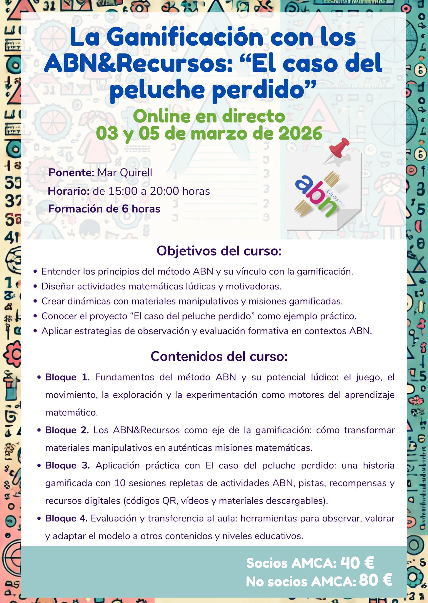 - 🎮 Gamificación a través de los ABN&Recursos: el caso del peluche perdido (03 y 05 de marzo | 17:00–20:00)