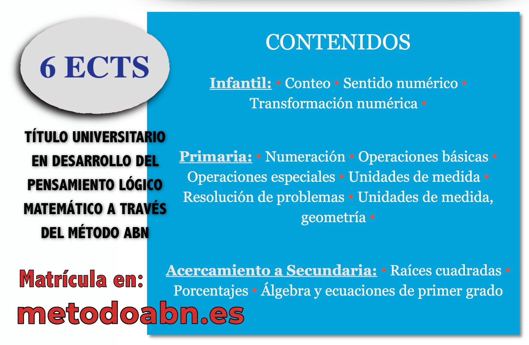 Curso válido para oposiciones y concurso de traslados (consulta en tu comunidad autónoma) Con este curso de 6 ECTS en colaboración con la Universidad Europea conocerás y aprenderás el Método ABN desde Infantil hasta el 1º ciclo de Secundaria. Claustro: docentes en activo expertos en didáctica de las matemáticas. Acreditados por la …