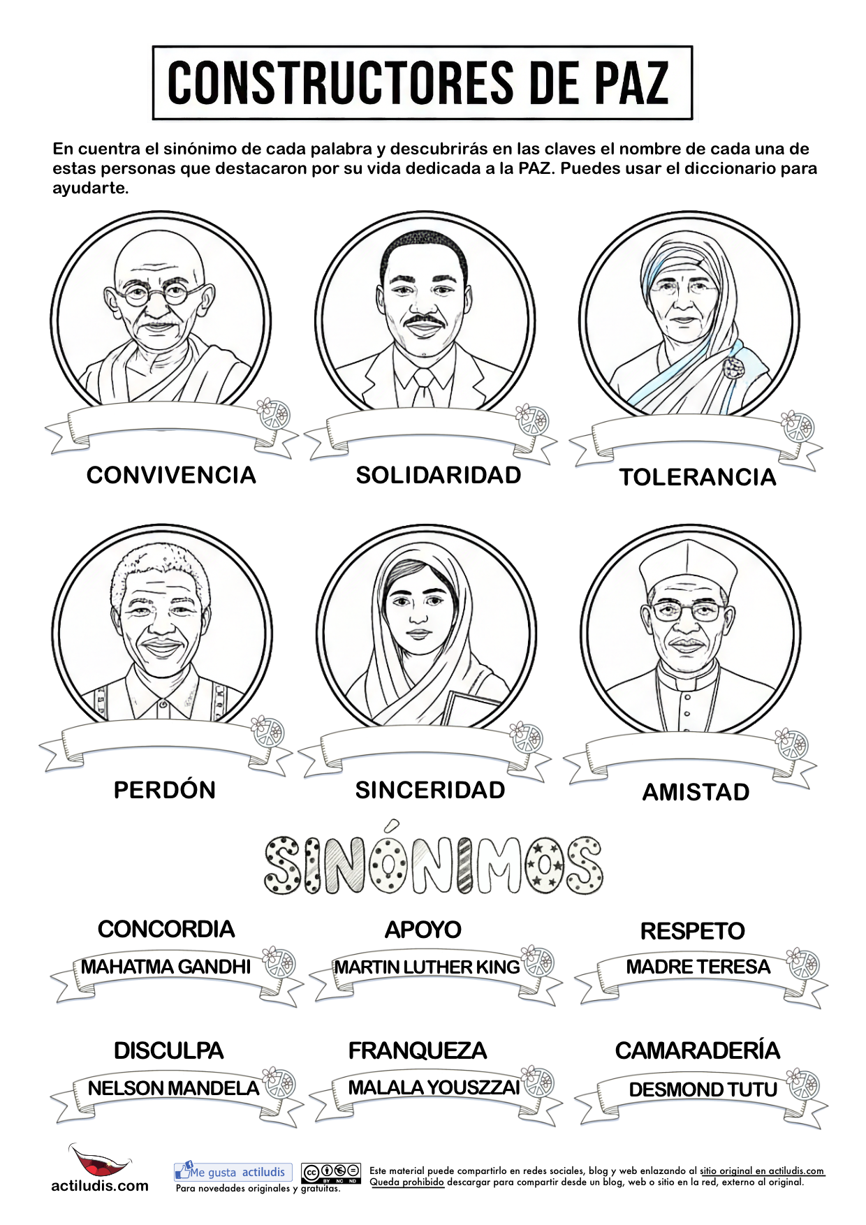 En esta actividad para el Día Escolar de la No Violencia y la Paz, vamos a trabajar los sinónimos y antónimos de una manera muy especial. El objetivo es que los alumnos aprendan a:
