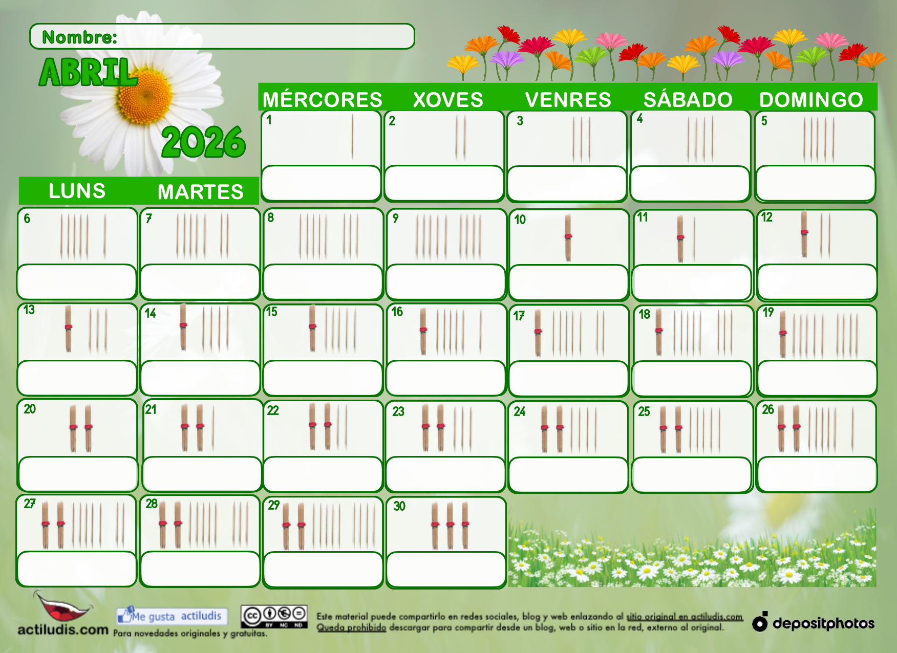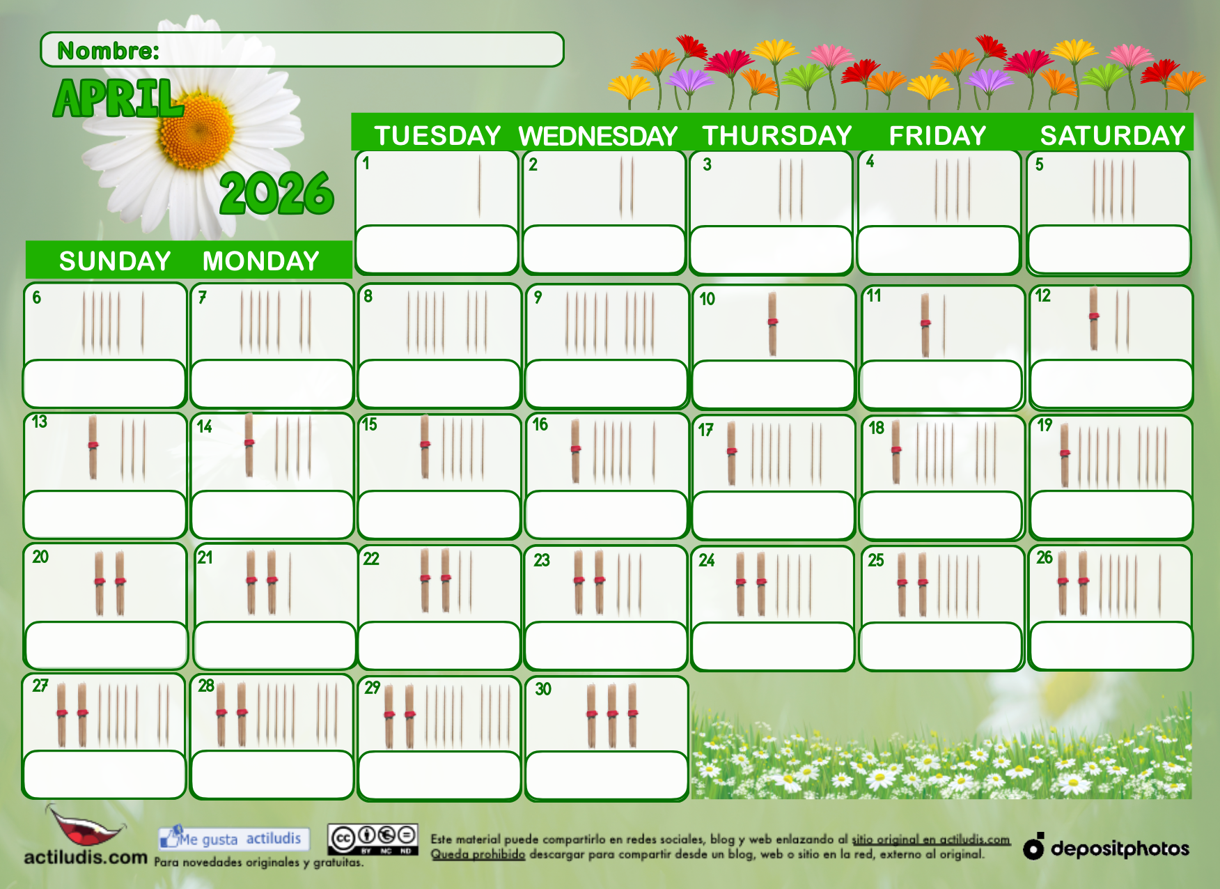 Calendario con representación de los días del mes de enero con palillos. Este material está pensado para Educación Infantil y Primero de Primaria con el que trabajar el calendario. La idea es que el alumnado use el calendario como rutina identificando el día e identificando el número que corresponde con los palillos representados.