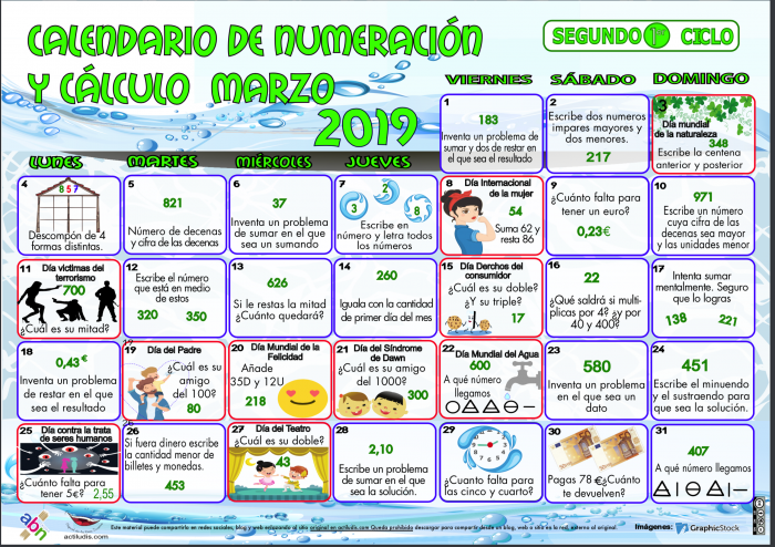 Calendario numeración 1º C segundo