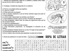 Trabajamos a través de una sopa de letras los términos propios de contenidos referidos a geología y en concreto a los fósiles. Así mismo una vez realizada la actividad se le propone al alumnado que recorte los dibujos que aparecen en la ficha, que los pegue en su cuaderno y …