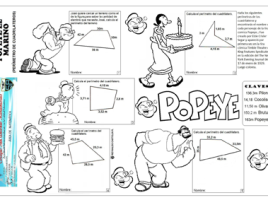 Añadimos 2 fichas nuevas fichas para trabajar los perímetros y las áreas. El elemento motivador es averiguar el nombre de personajes de dibujos animados antiguos, como son Popeye, y que han seguido de actualidad a través de las películas de cine.   El autor de este material es Reynaldo Oswaldo Cartolín Rosado Profesor …