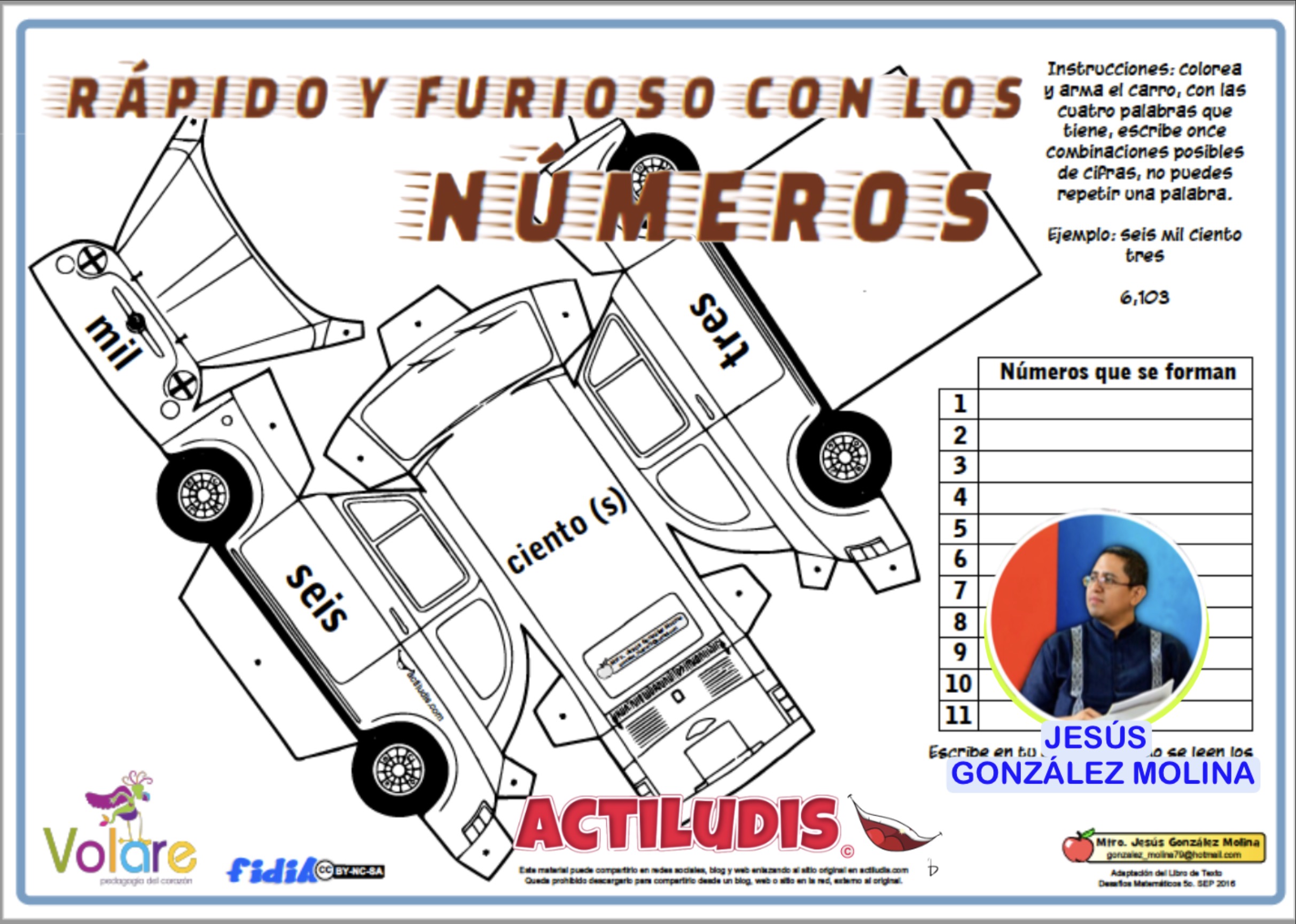 Con esta actividad creada por Jesús González Molina profesor de la Escuela Primaria Vicente Guerrero y catedrático en el nivel de posgrados, desde Los Placeres del Oro, en el estado de Guerrero, México, trabaja la numeración, jugando con todas las combinaciones posibles que figuran en la carroza de este 600, y que el …