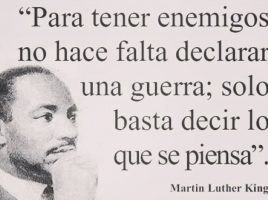 «Para crearse enemigos no es necesario declarar la guerra, basta con decir lo que se piensa». Martín Luther King Martin Luther King Jr. (Atlanta, Georgia 1929 – Memphis, Tennessee 1968). Fue pastor y activista estadounidense de la Iglesia bautista que desarrolló una labor crucial al frente del movimiento por los derechos civiles para los afroestadounidenses. Premio Nobel …