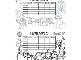 Horarios escolares con Stranger Thing y Among Us