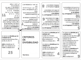 María Sanmartín Malvarez, del “CPI dos Dices Rois” de A Coruña, nos remite una actividad para que el alumnado repase jugando los criterios de divisibilidad del 2, 3, 4, 5, 6 , 8, 9 y 10. Para ello disponen de una tabla rodeada con los criterios de divisibilidad de cada uno …