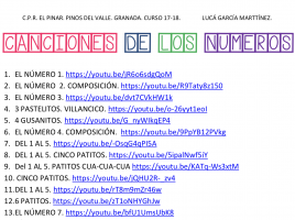 Lucía García Martínez maestra de Educación Infantil del CPR “El Pinar” en Pinos del Valle (Granada), nos envía una nueva recopilación, en esta ocasión de canciones, con las que poder trabajar el aprendizaje de la recta numérica del 1 al 5, del 1 al 10, del 1 al 20, secuencias en …