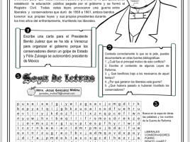 A través de una sopa de letras en la que deben buscar palabras relacionadas con los hechos ocurridos durante la guerra de Reforma y sus protagonistas, en la que el presidente Juárez incorporó varias leyes a la Constitución de 1857 que son de la mayor importancia para la vida del país …