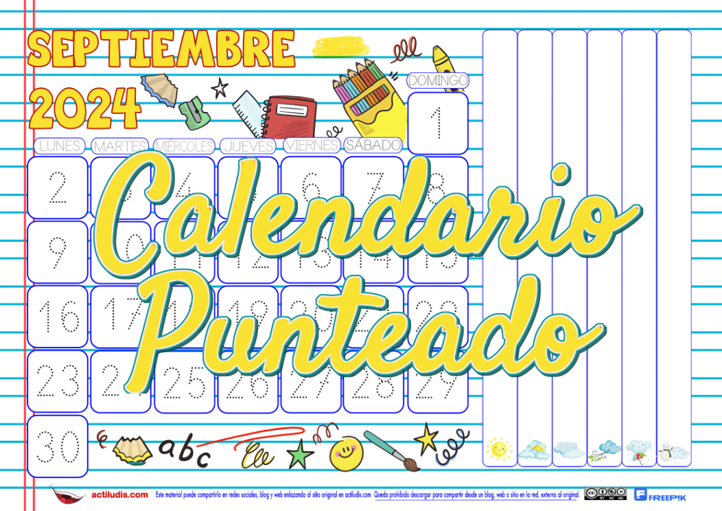 Las barras del gráfico, son para señalar diariamente la columna correspondiente al tiempo atmosférico de cada día. Se puede hacer señalando con un trazo o bien pegando un gomets. Conforme vaya avanzando el mes se irá formando la gráfica. El calendario punteado está disponible en A4 para montar a tamaño …