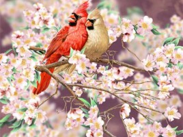 El cardenal rojo (aunque no todos sean de ese color)  es una especie de ave que vive en Centro y Norteamérica. Se le puede en bosques, jardines, pantanos y en ésta lámina que oculta un número indeterminado de ellos, realizado por el artista californiano Steven Michael Gardner. Se trata de un juego de agudeza …