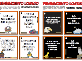 Se trata de una actividad para trabajar el pensamiento lógico, para ellos tenemos ocho tarjetas, 4 blancas y 4 negras, en las que se dan una serie de instrucciones para que el alumnado las resuelva y ponga en orden. Se trabajan conceptos como anterior y siguiente, por lo que es …