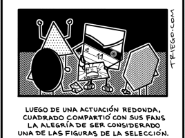 Juego de palabras realizado por Diego Arenas (Triego.com) con el apellido del jugador de fútbol Juan Guillermo Cuadrado, su actuación en el mundial de Brasil 2014 y las figuras geométricas. Ya hemos publicado varias viñetas de Triego, al cual le encantan jugar con el doble sentido de las palabras, hábito que también …
